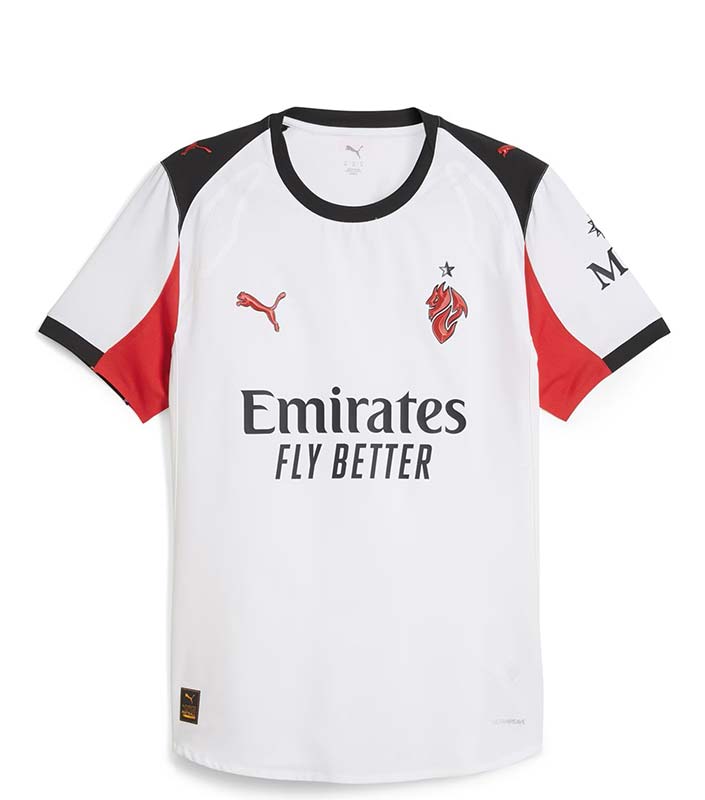 Show your pride for the Rossoneri with the Puma AC Milan Authentic Away Shirt 2025/26. The sleek away design blends tradition and innovation, showcasing a modern off-white base with bold crimson accents and the iconic AC Milan crest proudly embroidered on the chest. Ideal for match days, training sessions, or showing your team spirit during big UEFA nights with friends.